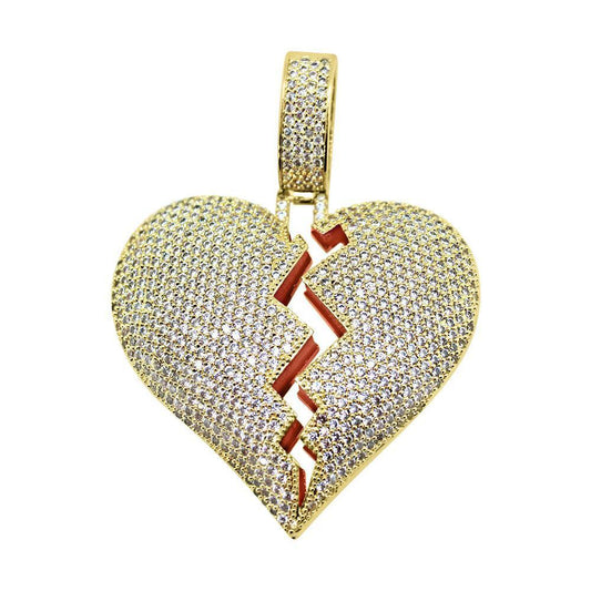 .925 Silver Heart Breaker Gold CZ Bling Bling Pendant