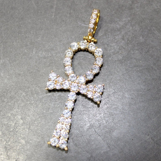 .925 Silver Hot Ankh CZ Bling Bling Gold Cross