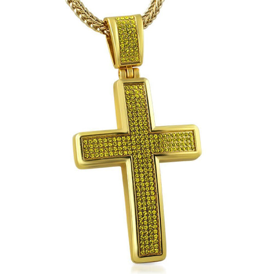 Clean Princess Cut Cross CZ Iced Out Pendant