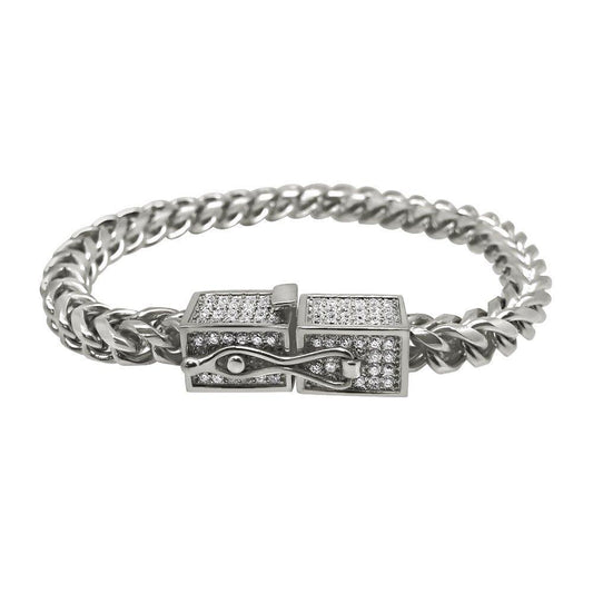 CZ Box Clasp Triple Lock Stainless Steel Franco Bracelet