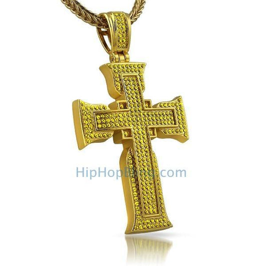 Lemonade Double Canary CZ Diamond Cross 316L