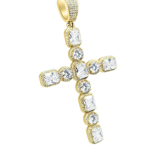 .925 Silver Emerald and Round Cut CZ Gold Cross