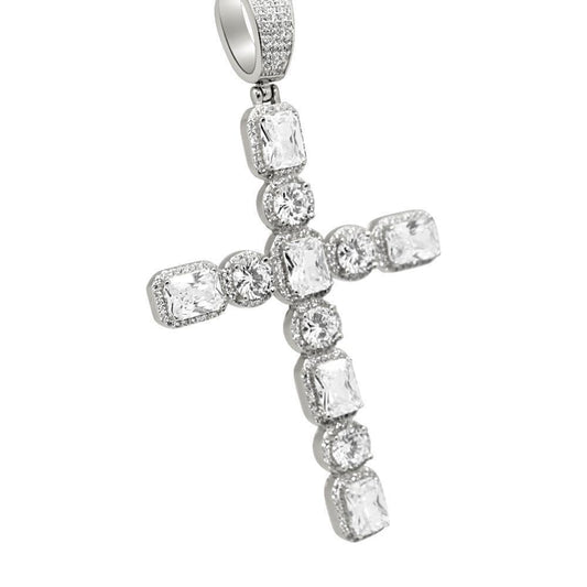 .925 Silver Emerald and Round Cut CZ Rhodium Cross