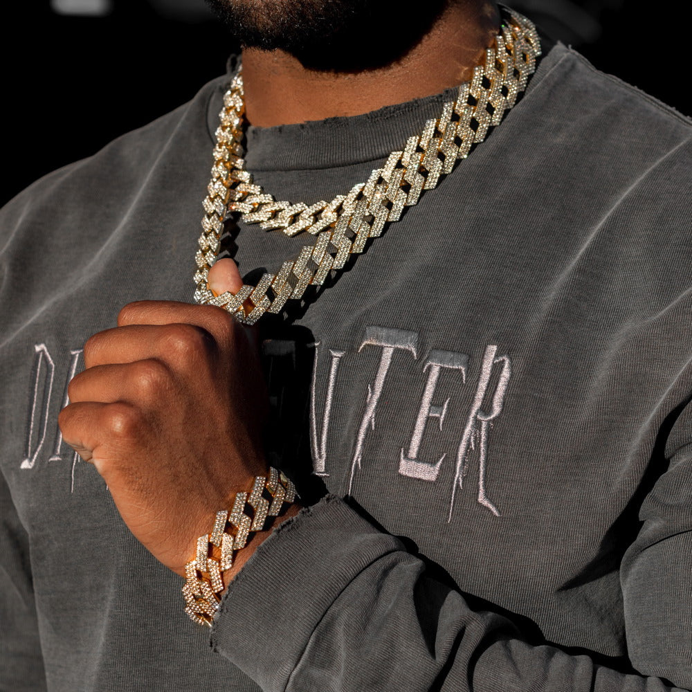 Cuban link hip hop chains have been extremely popular for the past 5 years in hip hop fashion. Covered in faux diamonds with a huge bling bling shine. This massive 20MM wide heavyweight Cuban Link Chain is modeled after a $100,000+ 14K Gold and Diamond version. Get the bling bling shine at a tiny fraction of the cost. The Cuban links are Yellow or White gold plated. This bundle normally Retails for $299 and offered on sale for $149 but today you can get this Amazing 3 piece bundle for ONLY $74.95 + FREE SHIPPING within the USA