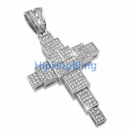 Building Blocks Cross CZ Micro Pave Bling Bling Pendant
