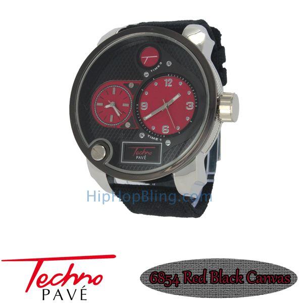 Red Dual Time Zone Silver Watch Black Canvas Band