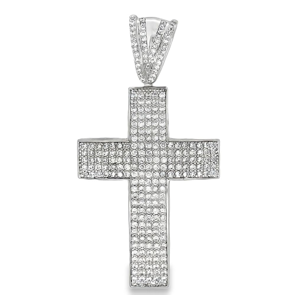 Ultra Clean Cross CZ Iced Out Pendant. This hip hop pendant features round cut simulated diamond stones giving this bling bling charm a unique shine and look to it. Beautifully crafted with precision stone setting. Hot style iced out Pendant that is unique and stands out from the crowd. The VVS CZ Simulated Diamonds have a bling bling shine as if they were genuine diamonds.